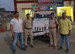 महाराष्ट्र सीमा पर गोवंश तस्करी नाकाम, पिकअप से 6 पशु मुक्त; चालक नाकाबंदी देख फरार
