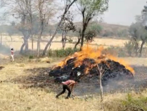 घटना सोमवार शाम करीब 4 बजे की बताई जा रही है। खेत में रखी गेहूं की फसल में अज्ञात कारणों से आग लग गई। उस समय तेज हवाएं चल रही थीं, जिससे आग ने देखते ही देखते विकराल रूप ले लिया और आसपास रखी फसल को अपनी चपेट में ले लिया।