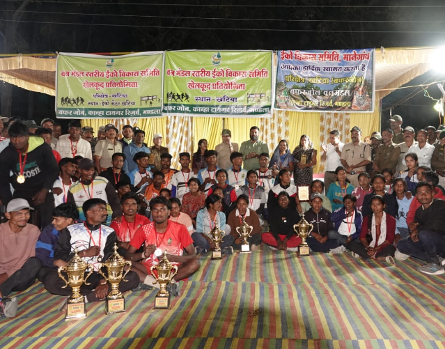 कान्हा टाइगर रिजर्व के खटिया परिक्षेत्र स्थित इको सेंटर परिसर में आयोजित समिति स्तरीय खेलकूद प्रतियोगिता का उत्साहपूर्ण समापन हुआ। वन विभाग और स्थानीय वन समितियों के संयुक्त तत्वावधान में आयोजित इस आयोजन में खेल भावना के साथ पर्यावरण संरक्षण का संदेश भी प्रमुख रहा। प्रतियोगिता में वॉलीबॉल और कबड्डी के रोमांचक मुकाबले खेले गए, जिनमें कुल 153 खिलाड़ियों ने भाग लिया, जबकि 500 से अधिक समिति सदस्य और ग्रामीण दर्शक के रूप में मौजूद रहे।