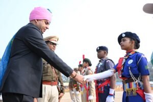 मुख्य अतिथि कलेक्टर पार्थ जैसवाल ने राष्ट्रीय ध्वज फहराया