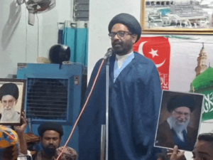 कार्यक्रम में मौलाना रजी-उल-हसन हैदरी ने मंच से कहा, “आज दुनिया में जालिम ताकतें मजलूमों का खून बहा रही हैं। चाहे इजराइल हो या अमेरिका, उनके हाथ मजलूमों और मासूमों के खून से रंगे हुए हैं। अल्लाह उन्हें गैरत दे।”