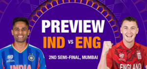 आईसीसी टी-20 विश्व कप का दूसरा सेमीफाइनल आज भारत क्रिकेट टीम और इंग्लैंड क्रिकेट टीम के बीच खेला जाएगा। मुकाबला वानखेड़े स्टेडियम, मुंबई में शाम 7 बजे शुरू होगा, जबकि टॉस 6:30 बजे होगा।